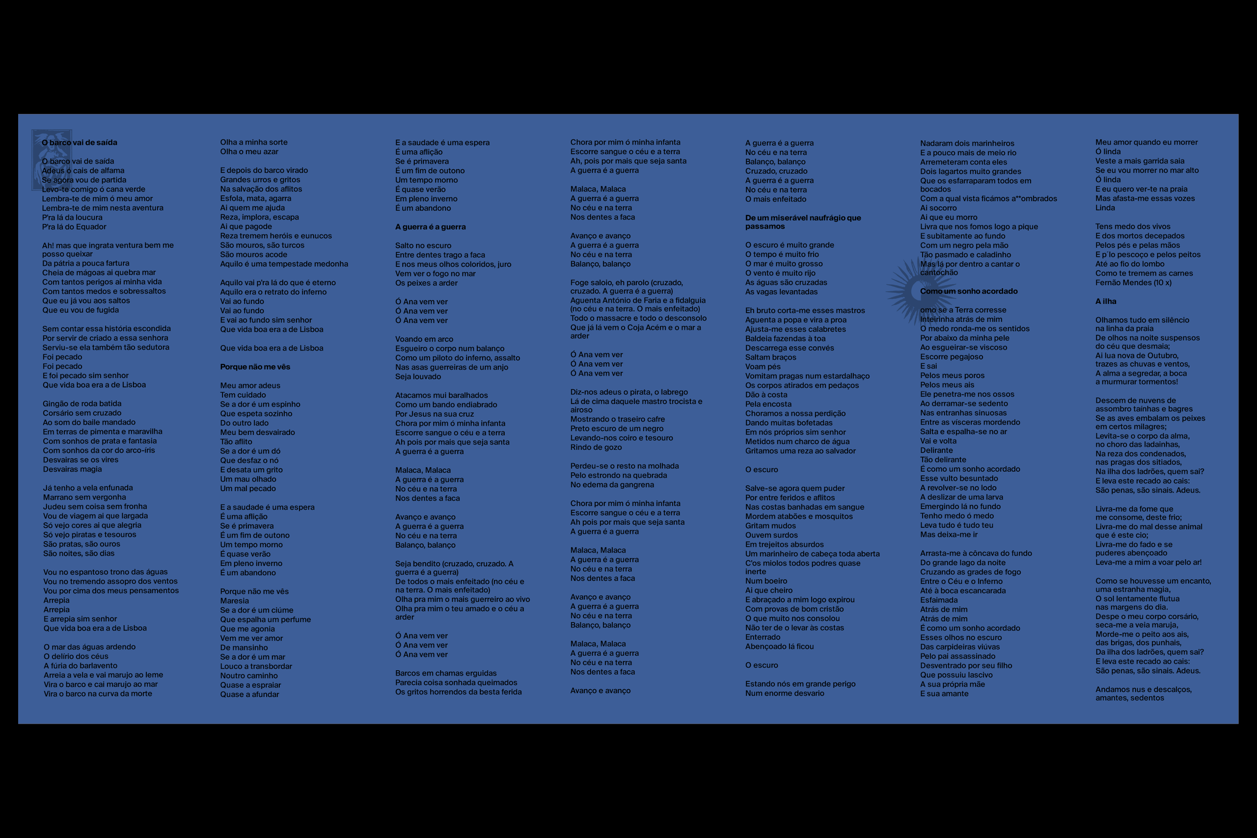 A reimagining of Portuguese singer-songwriter, Fausto’s album Por Este Rio Acima. Using a cover image of King Sebastian of Portugal, who disappeared in battle and left the country without an heir. Both Fausto's music and Sebastianism encompass a shared theme of hope and renewal.